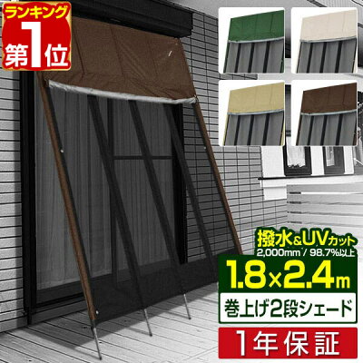 【楽天1位】ぱぱっと日よけスクリーン 幅180×丈240cm ファスナー巻き上げ/メッシュ 2段幕 ポール付 日よけ サンシェード 日よけスクリーン シェード UVカット 撥水 西日 目隠し ベランダ たてす よしず 1.8m×2.4m 日除けシェード 1年保証 ■[送料無料][あす楽]