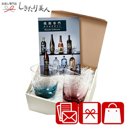 【セット内容】 ・グラス(直径8.6cm×高さ11cm)×2客 ・容量:335ml ・焼酎専門カタログギフト(選べる32点) ・重量:820g ・素材:ガラス ・箱サイズ:21×14×11cm 品物+カタログギフトシリーズ もっと「カタログギフト」を見る! 当店は「冠婚葬祭ギフト」「パーソナルギフト」の専門店です。
