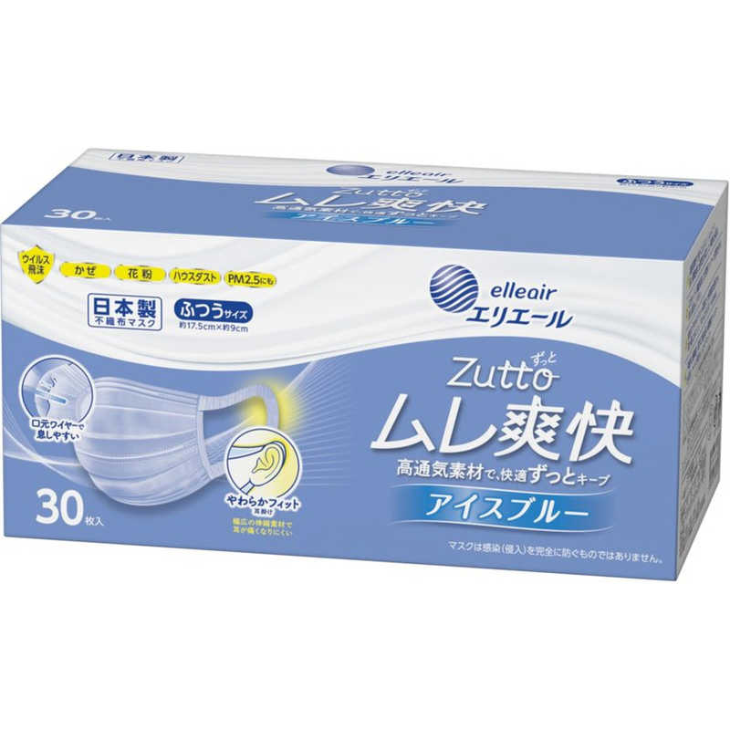 日本製不織布マスク エリエール ハイパーブロックマスク ムレ爽快 ふつうサイズ 30枚入りX3箱