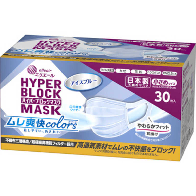 エリエール (日本製 不織布) ハイパーブロックマスク ムレ爽快 小さめサイズ 30枚入 PM2.5対応・99%カットフィルター (30個)