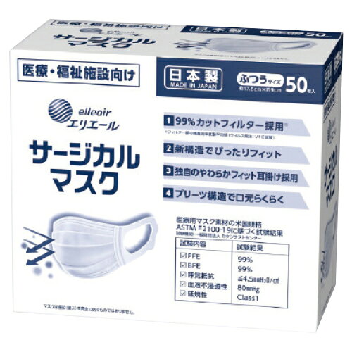 大王製紙 エリエール サージカルマスク ふつうサイズ50枚(ハイパーブロックマスク ウイルスブロック)(日本製)